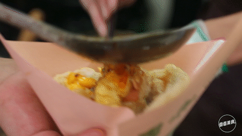 有人心急直接就站在路边开吃了
