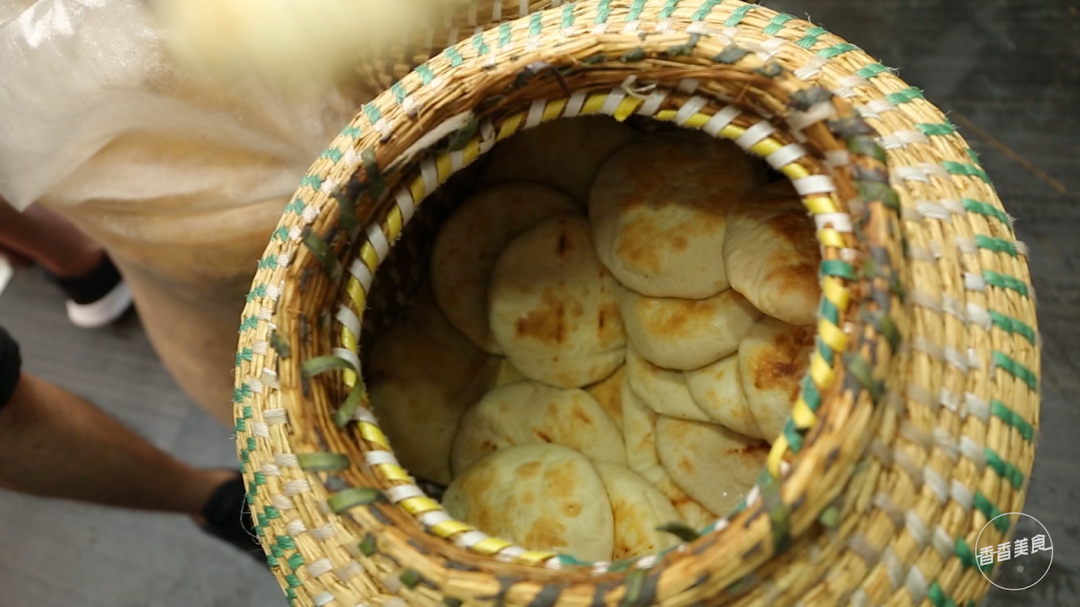 偷偷告诉你一个秘诀,一定要用热烧饼夹豆腐串。在师傅的一双巧手下,一个个面团变成了圆滚滚的烧饼。从烤箱里拿出来那一刻,热气喷薄香味四溢。筐里的烧饼虽然也冒着热气,但是和刚出炉的相比难免少了几分酥脆感。