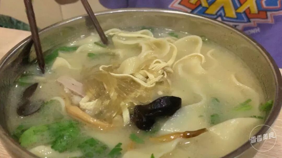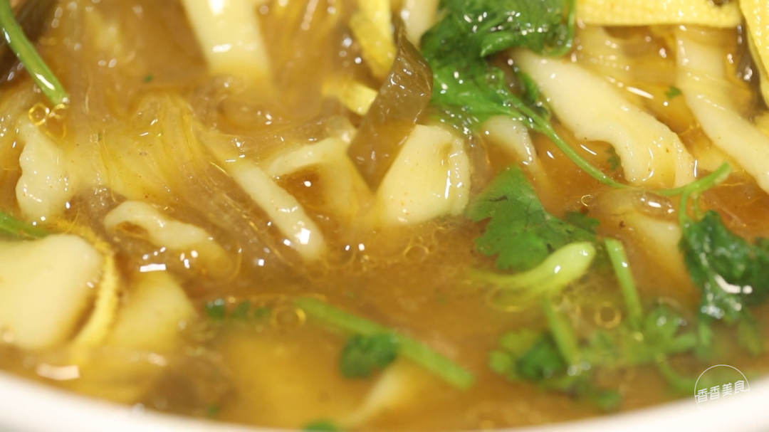 老吃家都说,烩面不一定要吃完,但汤是一定要喝完的,毕竟咖喱烩面的精髓都在汤里面了。一口下肚顺顺溜溜的,可能是上桌前碗里特意加了香油,反而有点腻,盖住了烩面本身的香味。如果加点醋解解腻,口感会更好。