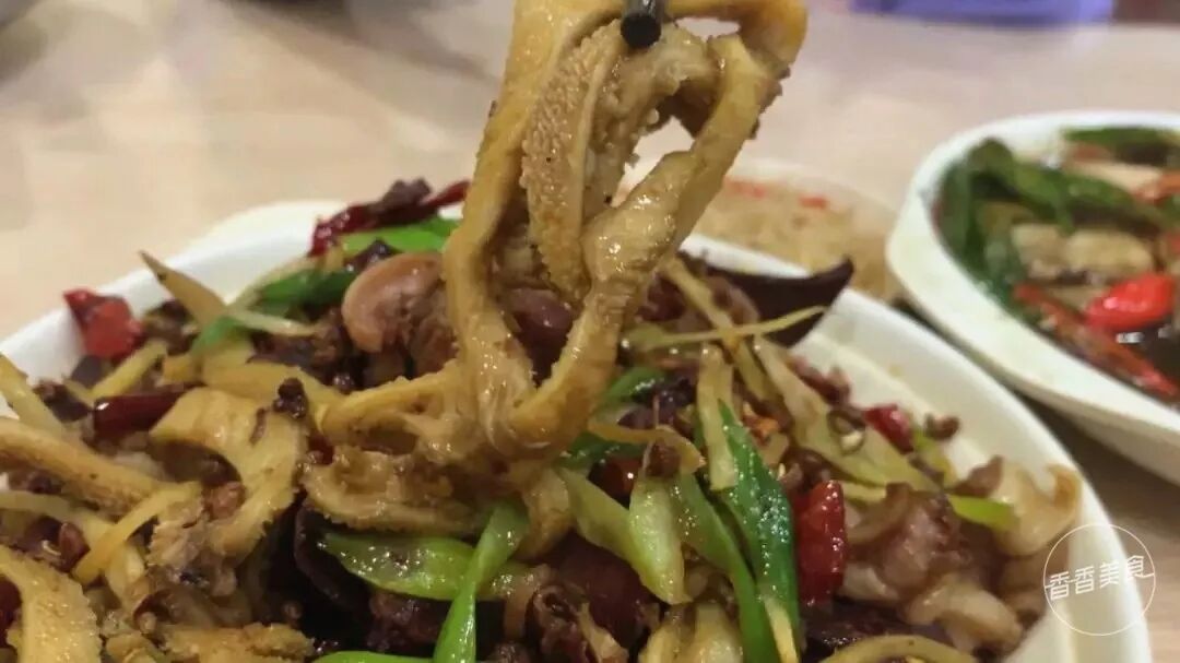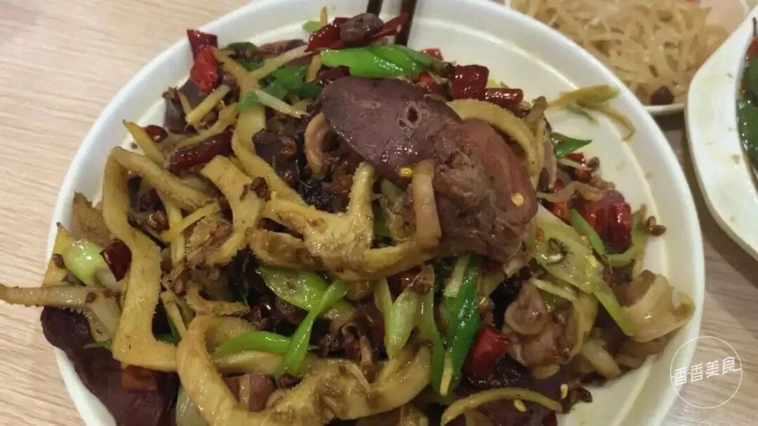 和一般烩面店不同,这里简直称得上是凉拌菜的海洋。从柜子这头到那头,足足有三十多种。酱花生配辣椒圈,红油耳丝配凉拌牛肉,配着烩面吃刚刚好。除此之外,这里还有一道不太常见的菜——炝鸡皮。乍一看和酸辣鸡杂有点像,鸡皮卷曲还有点肥肠的既视感。入口嫩嫩糯糯的,一点点辣味刺激食欲。吃完后嘴巴上黏黏的,感觉裹了一层胶原蛋白。