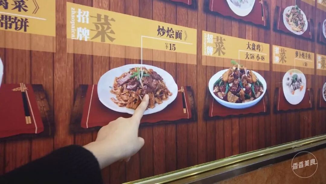 一旁的墙面上挂着菜单,小编一眼就瞅到了传说中的“炒烩面”。看图片上的色泽和配料,还有几分干炒牛河的模样,顿时就把人的食欲给勾起来了。不过味道到底怎么样,先点上一份尝尝再说。