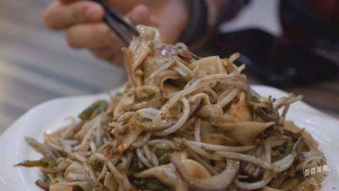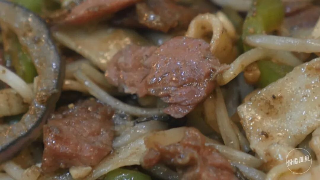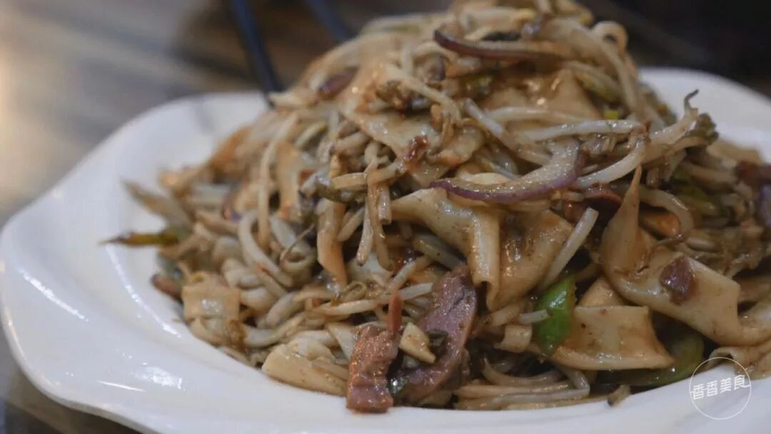和常见的烩面中配粉条千张丝不同,炒烩面里的配菜有绿豆芽、青椒、洋葱等。吃起来脆脆的,口感丰富有层次。本以为炒烩面里用到的牛肉是生牛肉,没想到是卤好的牛肉块儿切片儿后放进去的。味道嘛,也挺特别。