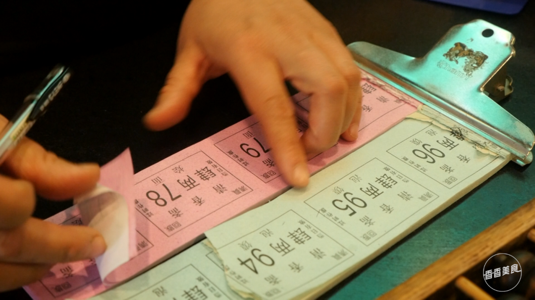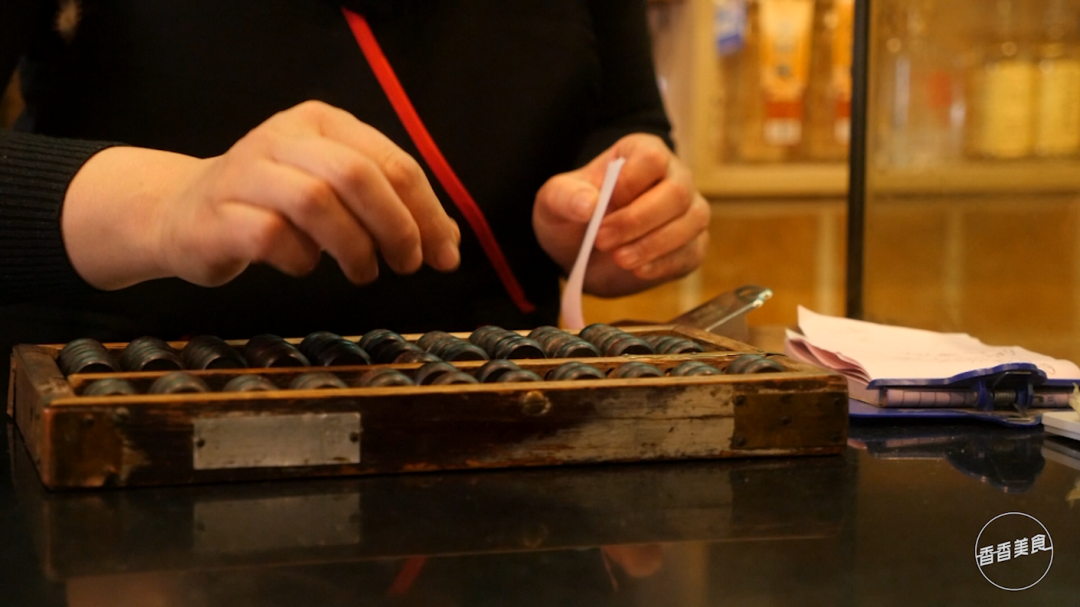 店里装修朴实,也保留了许多老传统和老物件。吃烩面和泡馍都要领票,这种方式现在在郑州也不多见了。泡馍是白色票,烩面是红色票,拿在手里满满的回忆。连这个算盘也是用了几十年的,经过成年累月的抚摸,算盘珠早已变得油亮。