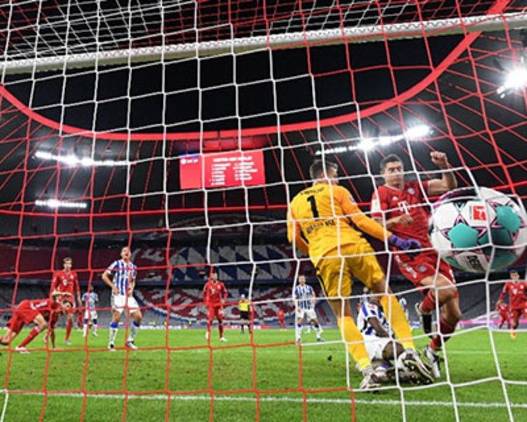 2020-2021赛季德国足球甲级联赛第3轮4日展开最后两场较量,拜仁慕尼黑在补时阶段凭借点球破门,以4:3险胜到访的柏林赫塔。莱万锋芒锐利,包办了拜仁的4粒入球。