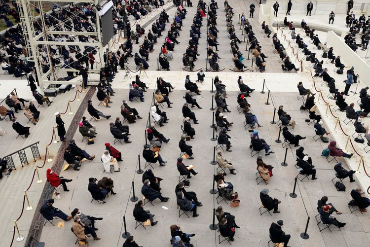 这是一个“缩减版”的就职典礼:观礼人数缩减为1000人;国家广场不对公众开放;午宴、就职舞会等传统活动取消,总统巡游改为线上举行……