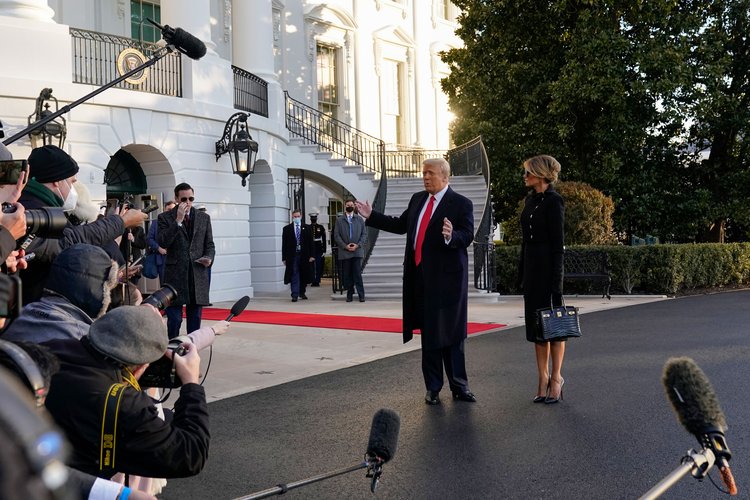 1月20日一早,特朗普偕夫人离开白宫,前往华盛顿郊外的马里兰州安德鲁斯空军基地,在一场简短的离任仪式后,乘坐“空军一号”回佛罗里达海湖庄园。