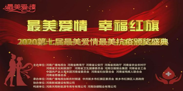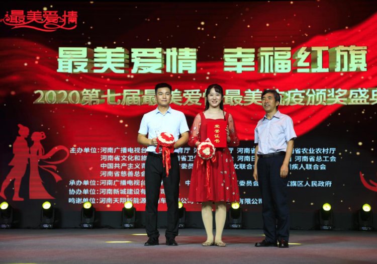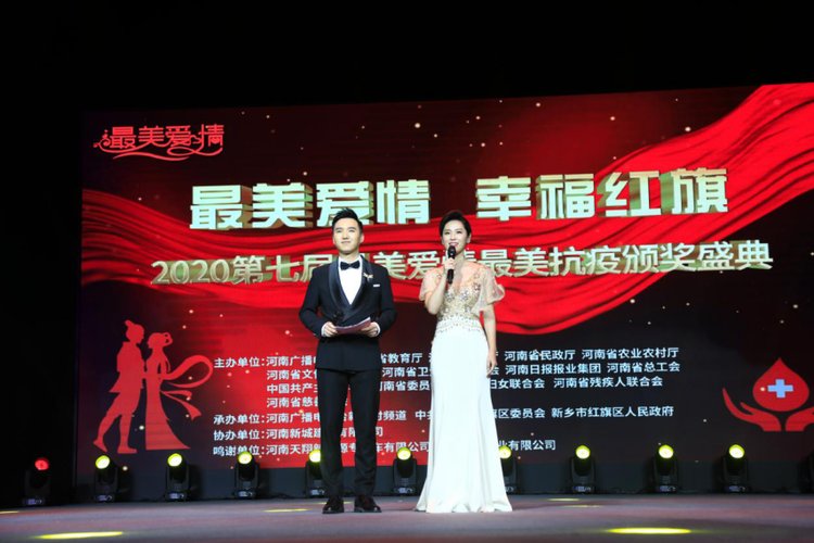 最美爱情,幸福红旗。8月25号晚,2020第七届中原最美爱情最美抗疫颁奖盛典在河南广播电视台9号演播厅举行,晚会为荣获第七届最美爱情、最美抗疫年度十佳夫妻颁奖。