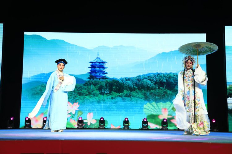 出身于梨园世家的杨历明与河南豫剧院三团演员康沙沙给观众们带来了一段精彩的豫剧《新白蛇传》游湖选段。
