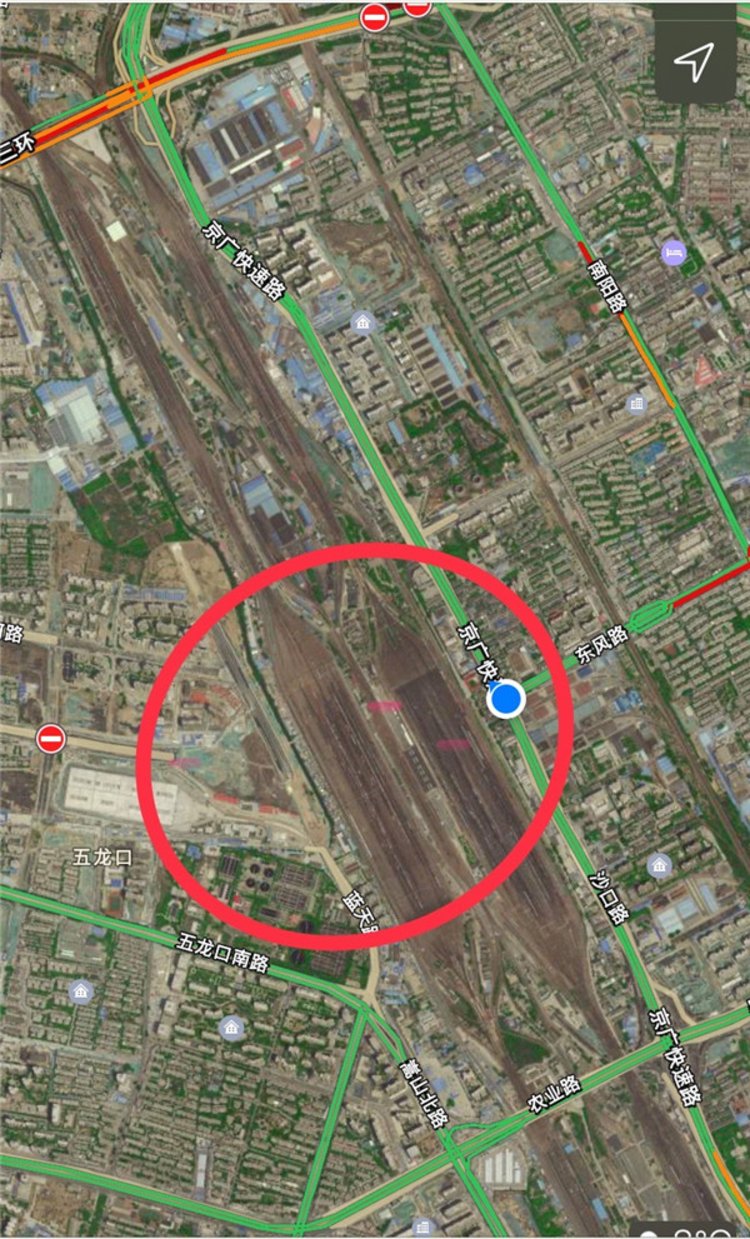 从地图上看,东风路跨越编组站与西边的东风西路相连,直线距离仅有1.1公路。但这一步之遥却要绕行到北三环或者农业路高架桥,多走好几公里。7年过去了,这段道路依然没能打通。