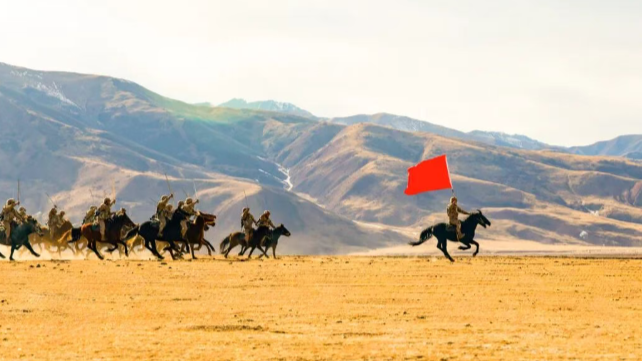 身材敦实、皮肤黝黑的 一级上士赵雪超 “嗖”地一下蹿上马背 缰绳一抖,双腿一夹 大喊一声:“杀!” 身下的战马随即一声长啸 如离弦之箭冲杀向前 赵雪超所在的玉树独立骑兵连 前身是1949年10月成立的 西北野战军1军3师9团骑兵连 当战争