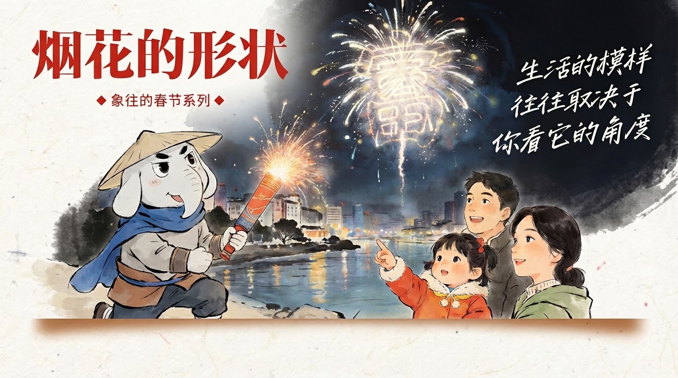 烟花漫天 有人看到遗憾 有人看到团圆 还有人看到最纯真的惊喜 生活的模样 往往取决于你看它的角度 大象漫评今天推出 《象往的春节系列⑩:烟花的形状》 文案:周长琴 条漫:张霞 牛昊
