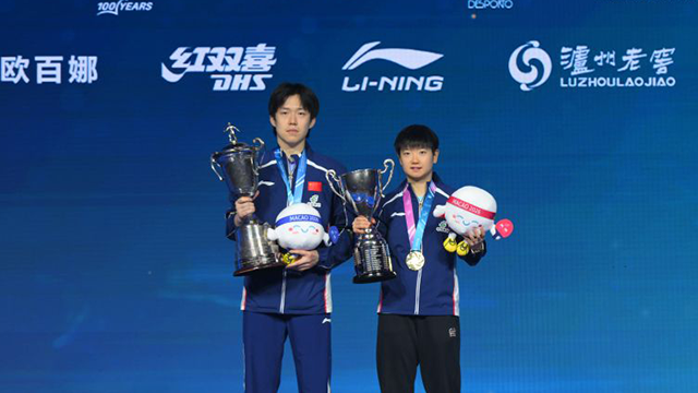 北京时间4月5日 国际乒联单打世界杯收官日 国乒女单提前包揽冠亚军 男单上演中日对决 最终孙颖莎4-1击败王曼昱 成为历史首位世界杯三连冠球员 王楚钦4-3逆转松岛辉空 生涯首夺世界杯冠军 史无前例!孙颖莎首位世界杯三冠王! 在国际乒联单