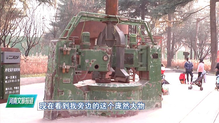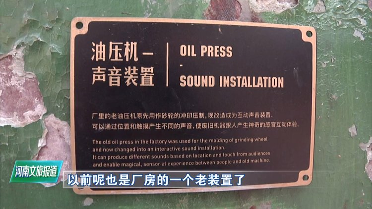 现在看到我旁边的这个庞然大物是不是很特别呢,它呢叫做油压机,以前呢也是厂房的一个老装置的,那现在呢废物利用,把它改成了一个声音装置,我面前呢有很多的按键啊,这些小小的按钮呢,都会发出不同的音阶,来这里呢可以弹奏一些美妙的音乐。
