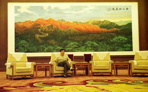 2001年,郝军绘制人民大会堂壁画《金山岭晨光》。