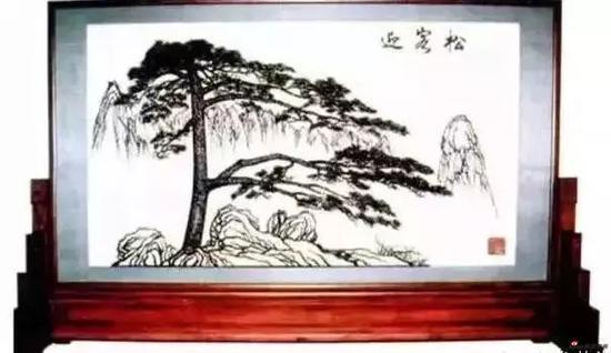 在人民大会堂有一幅巨幅迎客松,这是一幅铁画,由安徽省著名新安派画家王石岑与民间铁画艺人储炎庆共同完成。铁画《迎客松》的枝干到主干的组接奇巧无比,重重叠叠。枝干上一圈一圈的鳞皮,有凸有凹,有明有暗,正是各种形状的锤痕所显示出来的效果。而它的每一节小树枝,由60到80枚松针为一组锻接而成。此画先在人民大会堂安徽厅内陈列,后由周恩来总理决定移往人民大会堂贵宾接待厅。