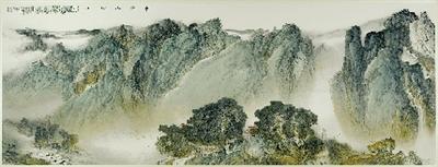 这幅巨幅国画气势磅礴,笔墨酣畅淋漓,山石奇绝跌宕,青松巍然林立,浑厚雄强,生动清新,一派大家气象,18年来一直悬挂在人民大会堂东大厅。《幽燕金秋图》几乎每晚都会出现在中央电视台《新闻联播》中,是央视出镜率最高的一幅山水画作品。