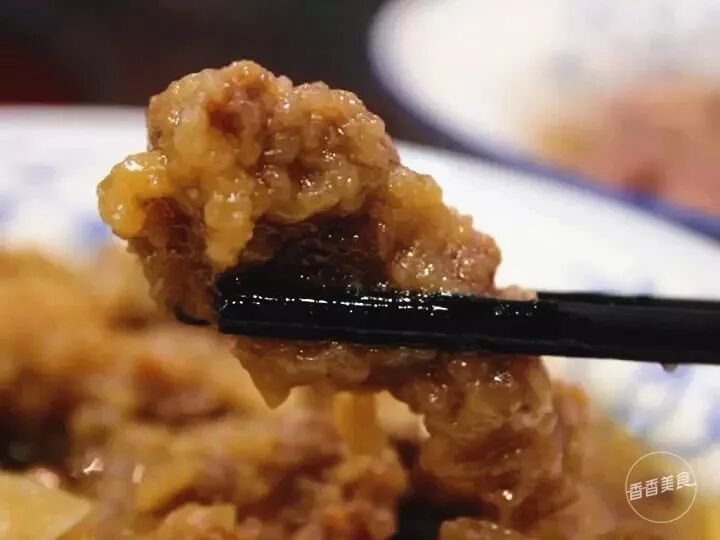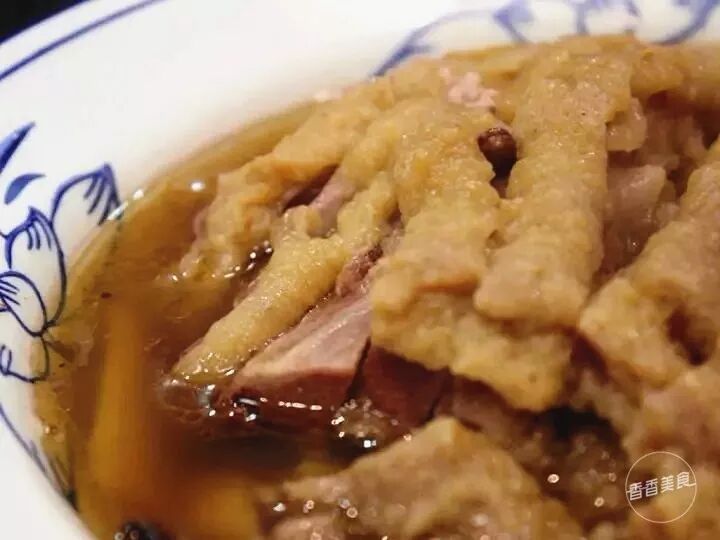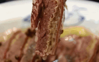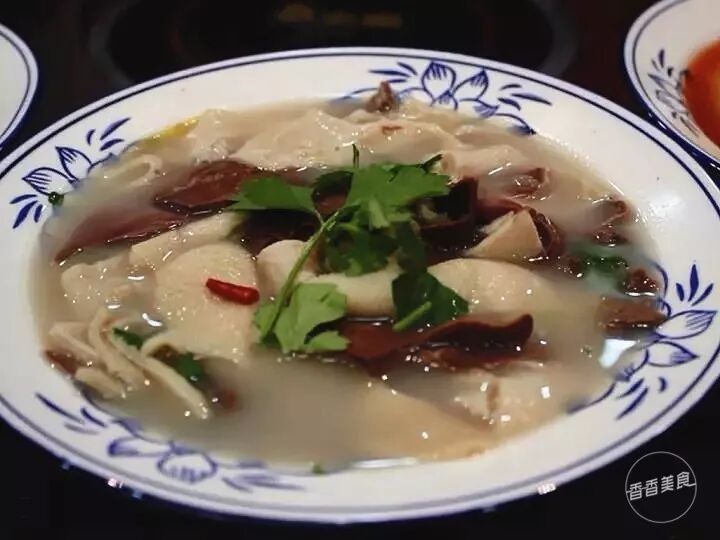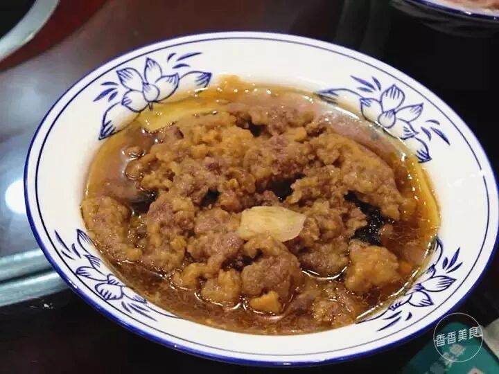 炖羊肉片选用的是羊后腿肉,去掉筋膜切成薄薄的片挂糊炸制上笼蒸熟。蒸好的羊肉片浸泡在汤汁里,泛着油润的光,吃起来软软嫩嫩的,还有几分爽滑的口感。