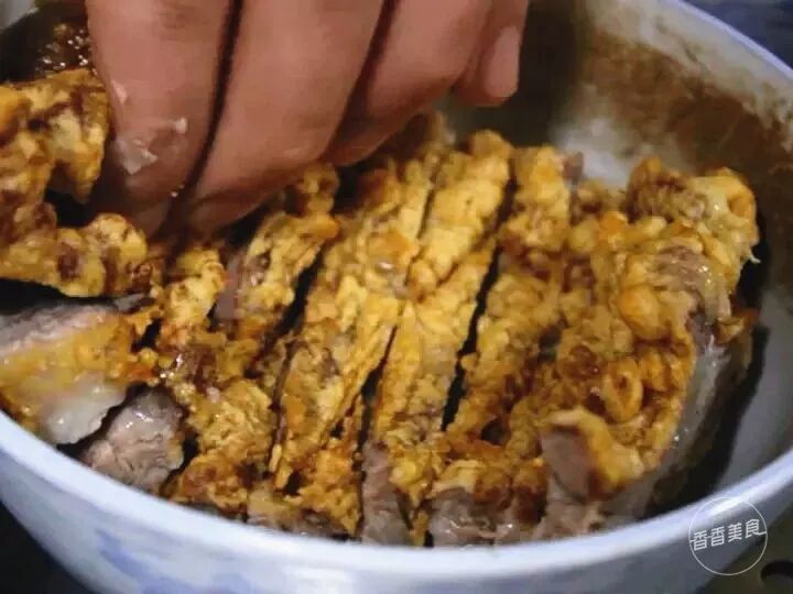 除了白炖肉,清真十大碗里还有大酥肉和小酥肉。对于一些没吃过大酥肉的吃货们而言,猛一听还以为是分量上大和小的区别。其实并不是,虽说这两道菜都叫酥肉,但从选料到做法完全不同。