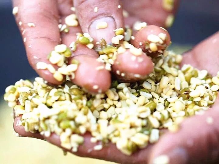 说了这么多,是时候带你们去看看绿豆渣饼的制作过程了。绿豆渣饼的制作过程很繁琐,选料也有讲究。要用个头饱满的绿豆,据说这样做出的绿豆渣饼口感才不会太差。