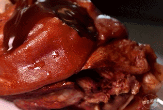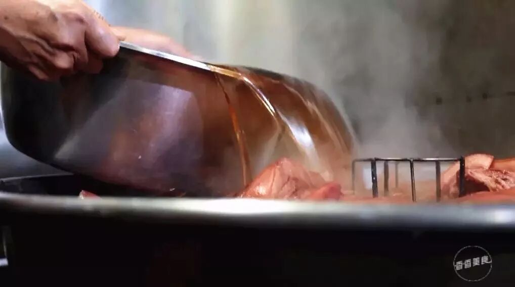大概两个小时左右,酱肉就可以出锅了。笼布一揭开,十足的肉香味就窜了出来,馋的人直咽口水。汤汁里的水分已全部蒸发,和肉里的油脂融在一起,成了粘稠的酱汁,吸附在酱肉上泛着油润的光泽。