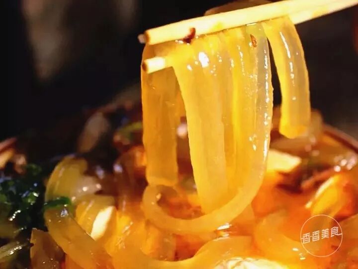 拿起筷子,把辣椒在汤中搅匀了。先呲溜上一口汤,入口鲜香滋味醇厚。扁粉软软滑滑的,裹了一层浓郁的汤汁,嗦起来都不愿意停口。几口下去,额头就渗出了一层细细的汗珠,嘴角留下微微的麻辣,让人直呼过瘾。