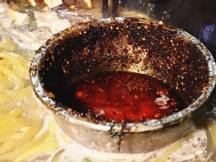细细打听才知道,这个辣椒油可是扁粉菜出味儿的关键。辣椒用的是陕西和四川交界处附近产的辣椒,据说这个辣椒香而不辣,打碎后浇入猪油和料粉。为了保持口感,要一直放在锅里持续受热,这样加到碗里吃起来才够香。