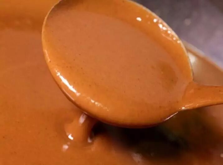 最吸引小编的还是芝麻酱,尝一口才知道它和普通芝麻酱区别还是挺大的。汝南当地芝麻做成酱后香醇厚重,加入经过七种香料炸制的油充分搅拌,看起来像融化的巧克力一样,口感也变的细腻丝滑。