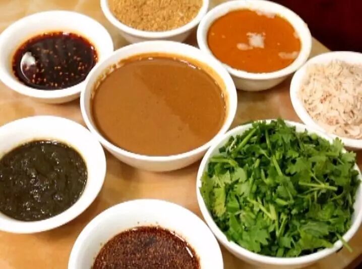 这边正涮着牛肚,那边涮料早已备好。芝麻酱韭花虾米香菜辣椒油等,五颜六色看起来很有食欲。吃货可以按着自己的喜好调配,种类和分量不同,出来的味道也不同。