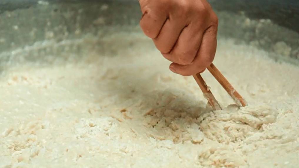 而决定整碗汤口感的关键因素就是麻烫,这也是最考验功力的地方。做麻烫要用烫面,这样做出来的麻烫筋道弹牙。为了不让麻烫碱性太大影响口感,和面时还要加入发酵好的面水来中和。