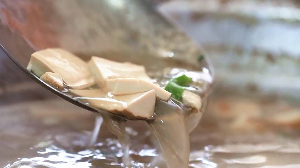 细细一问才知道,豆腐汤里用的豆腐是水豆腐。水豆腐含水量高,没有豆腥味,随吃随下不用煮太久。而煮豆腐的汤也不简单,是用香料熬制的。这样煮出来的豆腐口感鲜嫩爽滑,还吸收了香料的味道。