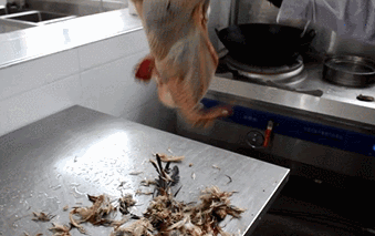 没有几年的功夫是做不好烧鸡的,给鸡子褪毛就是很见功夫的一个环节。可别小看这个环节,既要控制好水温,手速又要到位,这样褪出来的鸡子既干净还能保证鸡皮完整不破。