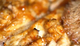 鱼肉一定要用新鲜的,烤之前刷上一层蜂蜜,既能增色又能提味儿。听老板讲,马坡烧烤之所以吃起来有甜口,大部分是用了蜂蜜的原因。因为当地养蜂户比较多,盛产蜂蜜。另外,虽说白糖也有甜口,但它没有蜂蜜烤出来的食材更有口感。