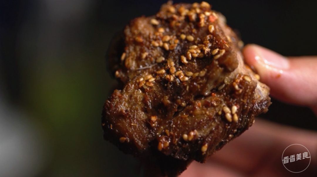 原以为羊排经过烤制后,会有些干柴。没想到咬破外层的焦皮,软软嫩嫩的羊肉立马就从骨头上脱离下来。香和嫩是最大的感受,但是鲜味过后就有甜味涌上了舌尖,和眉条筋吃起来甜甜的口感不差分毫。难道,甜味是马坡烧烤的特点?