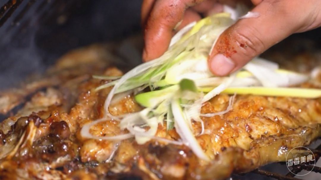 烤好的鱼肉光看色泽就能成功勾起吃货的食欲,第一口下去,先是甜蜜的幸福感。接下来就是鱼皮的焦香和鱼肉的软嫩,更绝的是鱼肉已经烤到脱皮,吃的时候再裹着烤鱼身上的葱段吃,那滋味……一个大写的满足。
