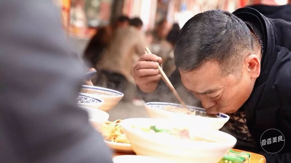 紧赶慢赶,去的时候还是过了饭点。已经是下午的一点半,想着店里不会有太多食客了,没想到从屋内到屋外,依旧坐得满满当当。人人手捧一个大面碗,头也不抬的往嘴里扒拉,面条进嘴的瞬间,脸上就不自觉地溢出了一种“真香”的表情。