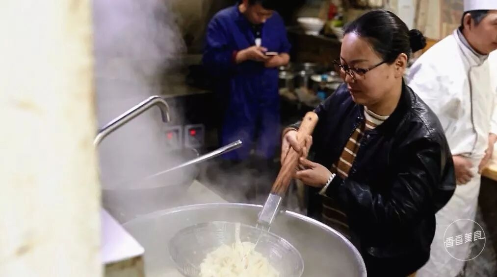 每天最忙碌的地方就是后厨了,这一边的面案上有人负责切面、有人负责甩面,另外一边就是下面、炒浇头和盛面。环环相扣,看起来似乎有点忙乱,却也是井然有序地进行着,一点都不耽误食客们的就餐时间。