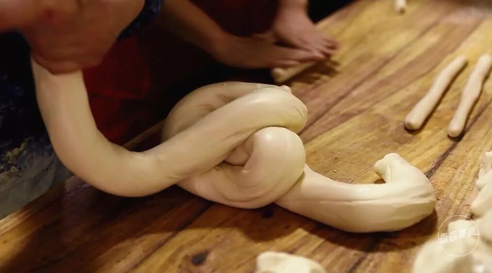 要想做好这个甩面,每个环节都马虎不得。每天早上六点左右,后厨的师傅就会来到店里揉面饧面。和好的面团要先分成面剂子,拉成长条状后刷上油再饧上两个小时才能用。因为吃饭的人太多,这些活儿如果不提前做好的话,根本供不上庞大的需求量。