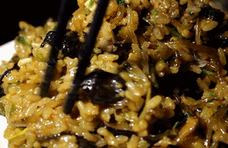 掀开锅盖,一股热气裹着香气扑面而来。挨着底部的米饭,已经变成了不少年轻吃货惦记的“锅巴”,入口焦脆咸香。简单搅拌一下,香菇、干豆角、粉条等就和米饭混在了一起,一口下去的滋味,还真有种说不出的特别。
