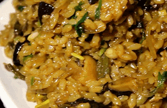 鸡肉经过炖煮后,体内的油脂被完全逼出浸入到了汤汁中。米粒吸收了汤汁的鲜香后变得油润饱满,看似软糯入口软筋,米香味儿十足。米饭中还混合了干豆角、香菇等食材,第一口有种吃煲仔饭的错觉,后味却比煲仔饭丰富许多。