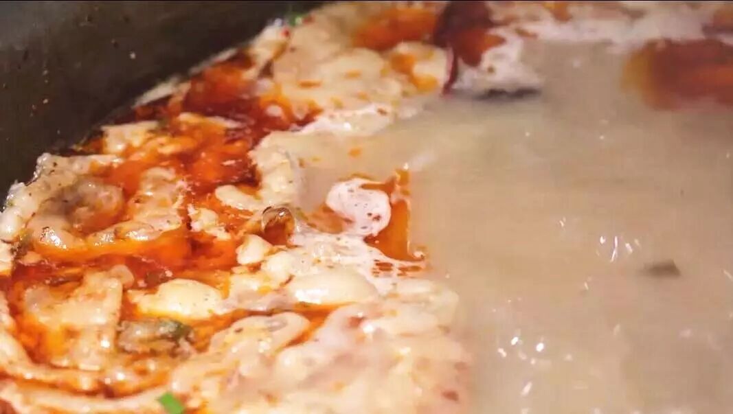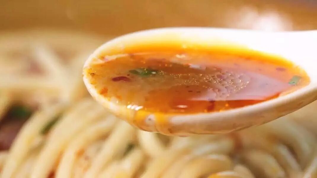 要想出味儿,辣椒的加入必不可少,不过饸饹面可是有专用的羊油辣椒。羊尾巴油加上骨头汤和十多种配料,用大火熬上两三个小时,吃货站在锅边就能闻到羊油的浓烈香气。