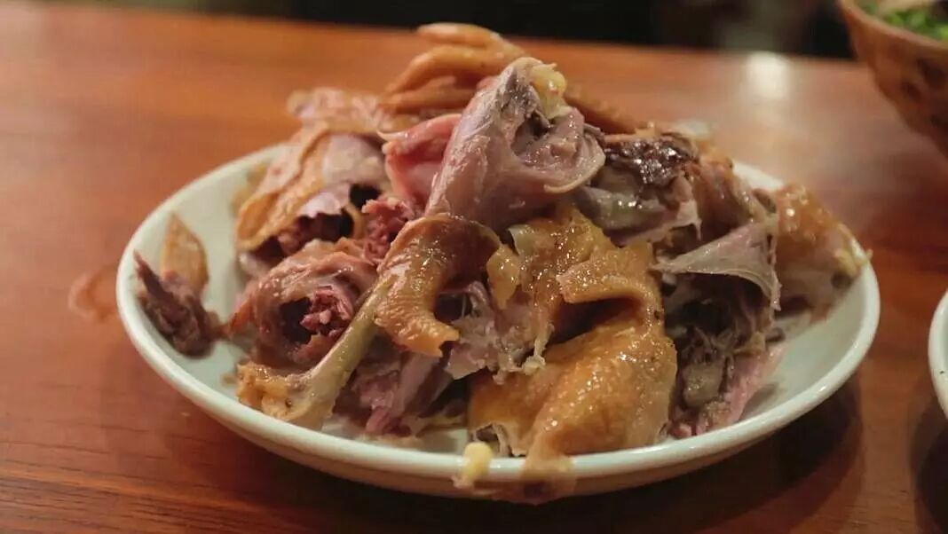 当地人吃饸饹面,都会配上一碟卤味。刚刚卤出的羊蹄滚烫软烂,辣味不是特别重麻味却很足,啃起来很是惬意。吃货如果降不住羊蹄可以试试烧鸡,表皮油润已经完全酥掉了,配着饸饹面来吃刚刚好。