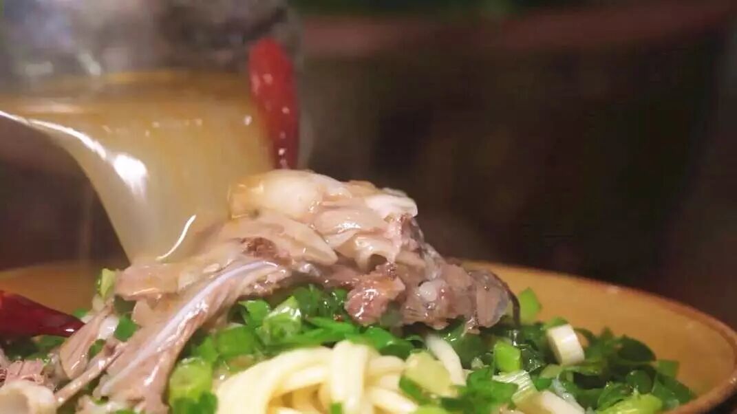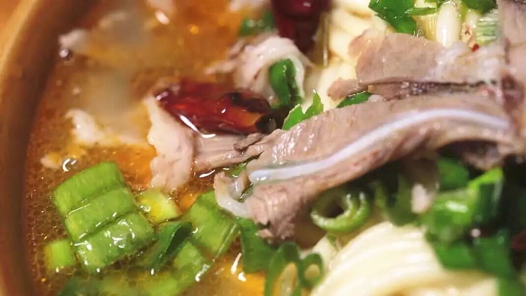 煮好的面捞出后撒上一把细碎的葱花,夹上几片卤好的羊肉,再浇上一勺滚烫的热汤就可以了。细嫩的肉片浮在汤表面,丝丝缕缕的香气迫不及待钻进了鼻孔里。