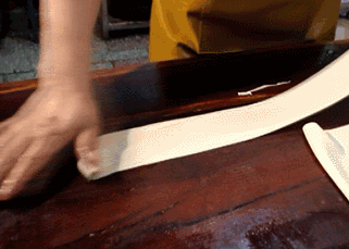 接下来就是最见功夫的环节了。王师傅揪下一块儿面团擀平,提起一端用力一甩,面团就变成了扁平的长条状。在展开的面皮上均匀地抹上一层汤油,据说这样做出来的烧饼内瓤才能层次分明。
