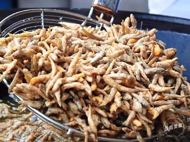 在炸制的时候,对火候和油温的把控也有要求。油温太高炸出的小鱼发糊发苦,油温太低则去不掉小鱼的腥味。七成热的油温下入小鱼,炸制定型再转小火浸炸,等到小鱼肚子和脊背处捏起来硬硬的时候就可以了。