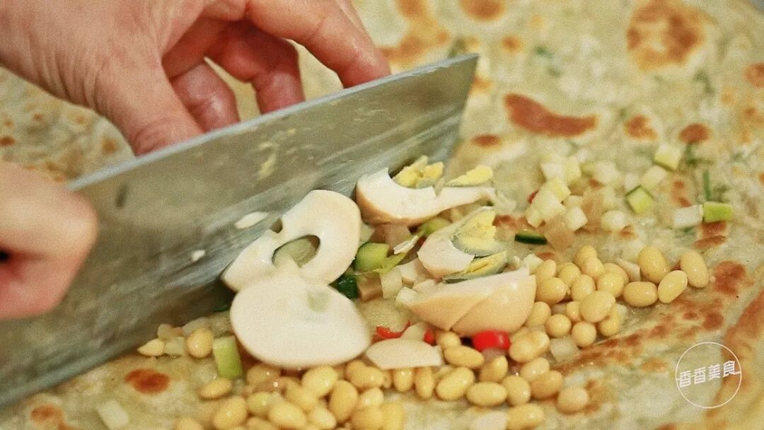 豆腐脑稀罕,搭配豆腐脑的主食更稀罕。在这家店,人们习惯用油饼一样的油馍,配着豆腐脑一起吃,而且里面一定要卷上两颗茶叶蛋,几勺煮过的黄豆、黄瓜丁和土豆丁,这种神仙吃法,想想都觉得过瘾。