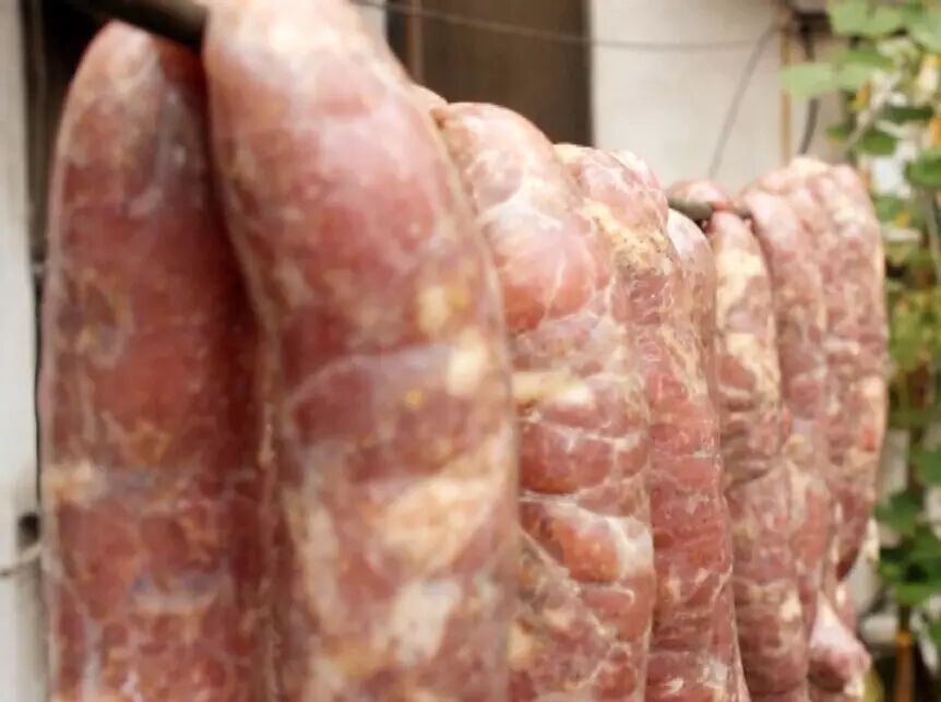 灌好的香肠挂起来晾晒