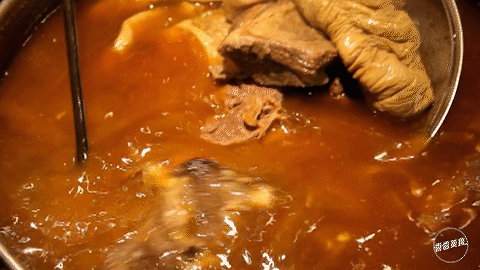 在好奇心的撺掇之下,我们也赶紧点了一份。肉是卤出来的,红润但不夸张。装盘前师傅还会细心地切成小块儿,额外浇上一勺卤汁儿。别看还没吃进嘴里,但按照我们多年的吃肉经验,这样做滋味儿铁定欠不了。