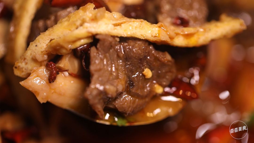 如果说大块的牛肉是这口锅的门面担当,负责吸引吃货们的眼球,那低调的牛板筋才是真正的实力C位。毕竟这东西天生自带棱角,处理不好口感就会像皮筋一样,怎么咬都咬不动。