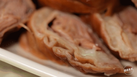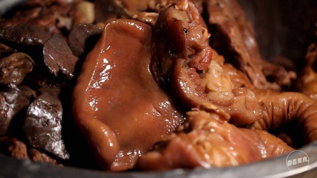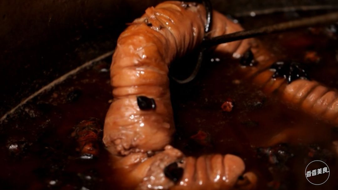 在众多的卤肉品种中,最受欢迎的应该就属套肠了。看上去比普通的大肠要“壮”上不少,这是因为大肠里面又套了小肠,所以口感会格外的紧致、筋道。肠壁里的脂肪被清洗得很干净,没有异味,嚼起来香而不腻。