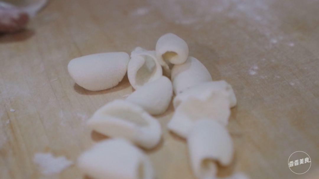 口感的惊喜必定是在做法上下了功夫的。听后厨的师傅说,传统的猫耳朵基本上就是用面粉和出来的。他们在这个基础上做了改良,在面团里混进了一定比例的小麦淀粉和生粉,这也是口感爽滑的主要原因。